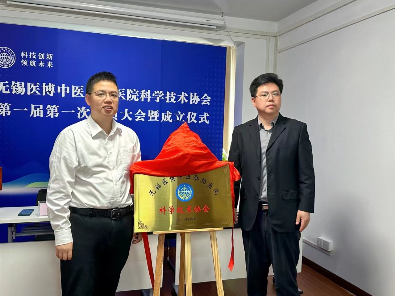 成立仪式上,伍光辉书记和林育景主席共同为“无锡医博中医肛肠医院有限公司科学技术协会”揭牌,标志着医院科协的正式成立。
