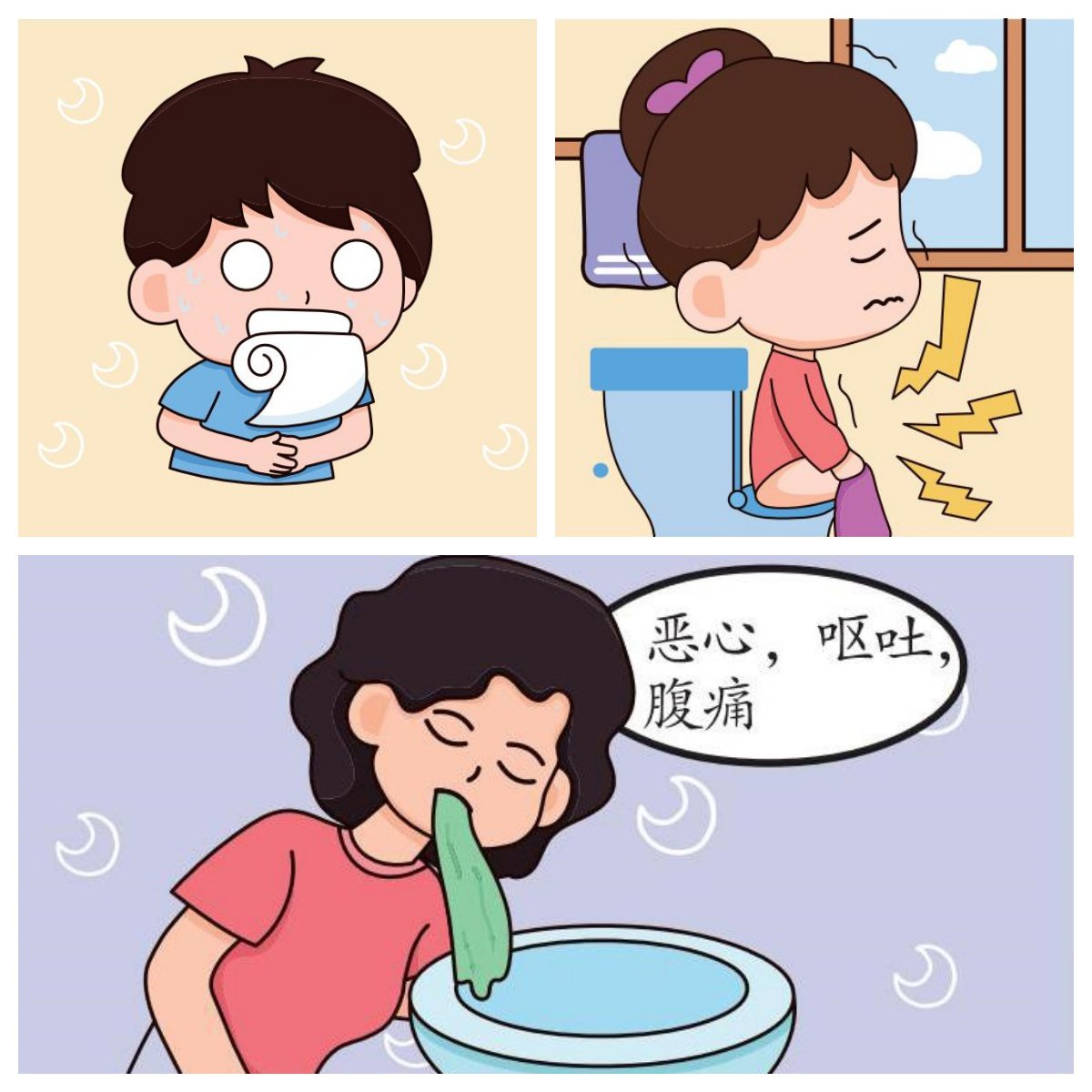 3. 腹痛。肠道炎症、肠梗阻、肠穿孔、肠袢缺血等均可出现急性腹痛,肠道肿瘤或慢性炎症病变则常有持续性腹痛。